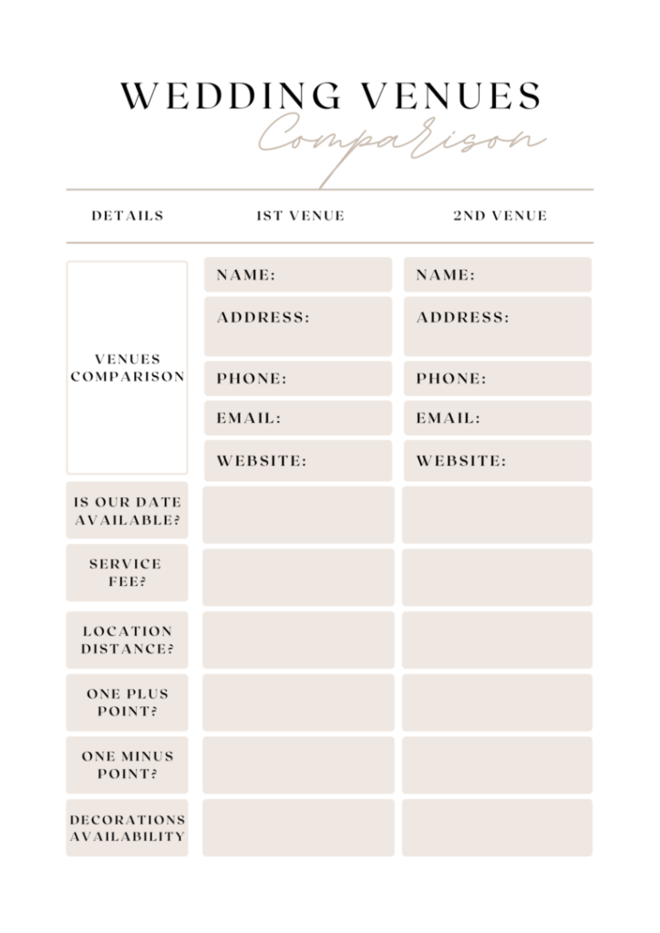 WEDDING VENUES COMPARISON