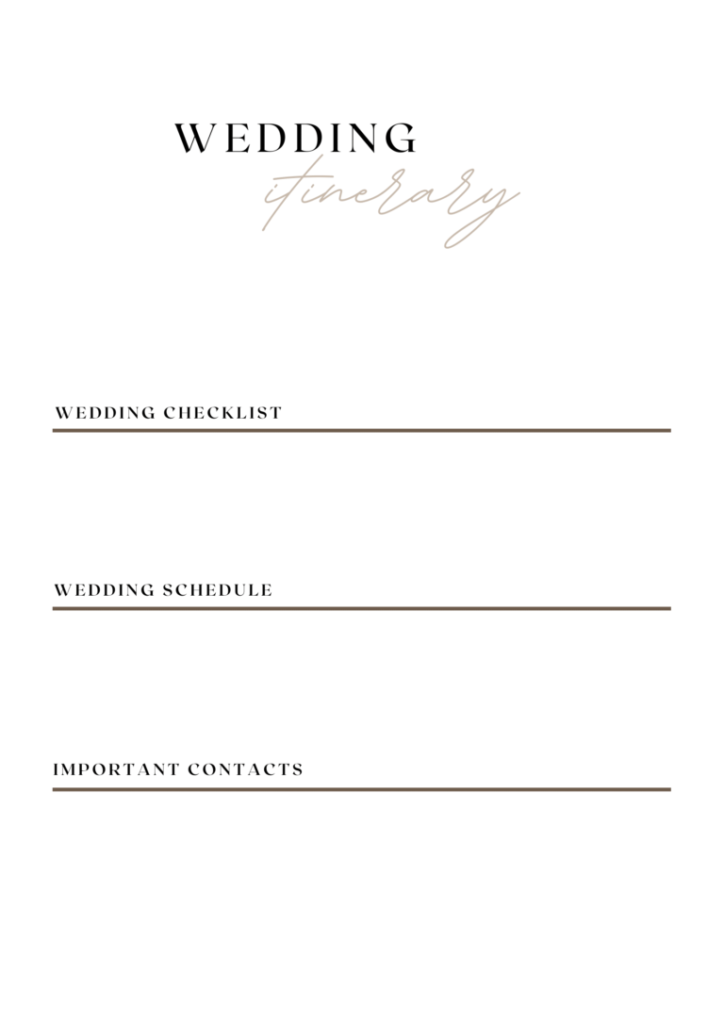 WEDDING ITINERARY